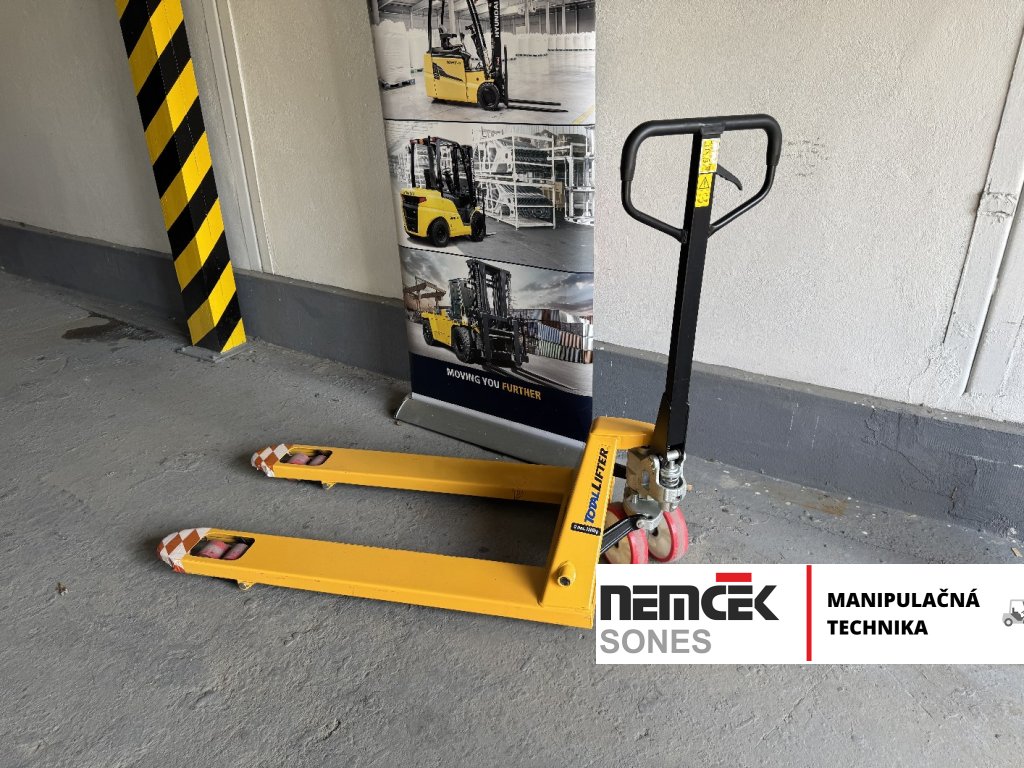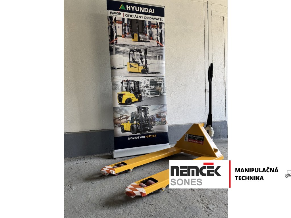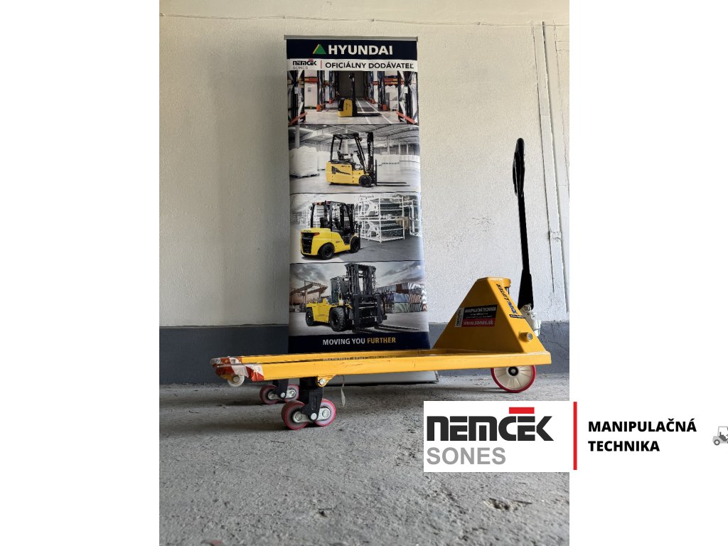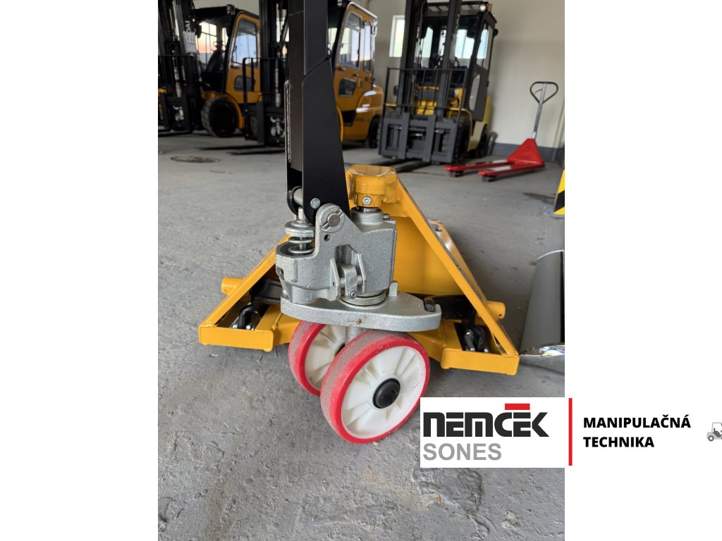- Vhodný pre prácu s materiálom do hmotnosti 2500 kg. Paletový vozík má kompaktné rozmery.